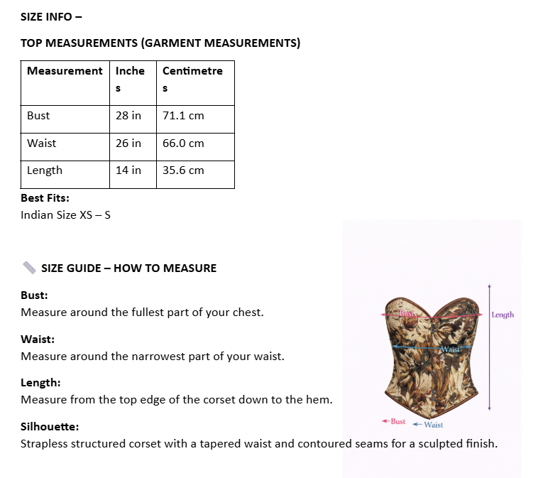The Azure Tapestry Corset Top blends vintage-inspired florals with a modern sculpted silhouette. Designed with a structured, strapless corset body and elegant hook-front detailing, this piece enhances the bust while gently cinching the waist for a flattering, feminine shape.
